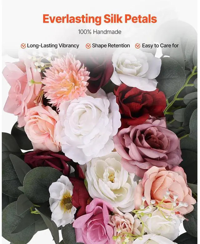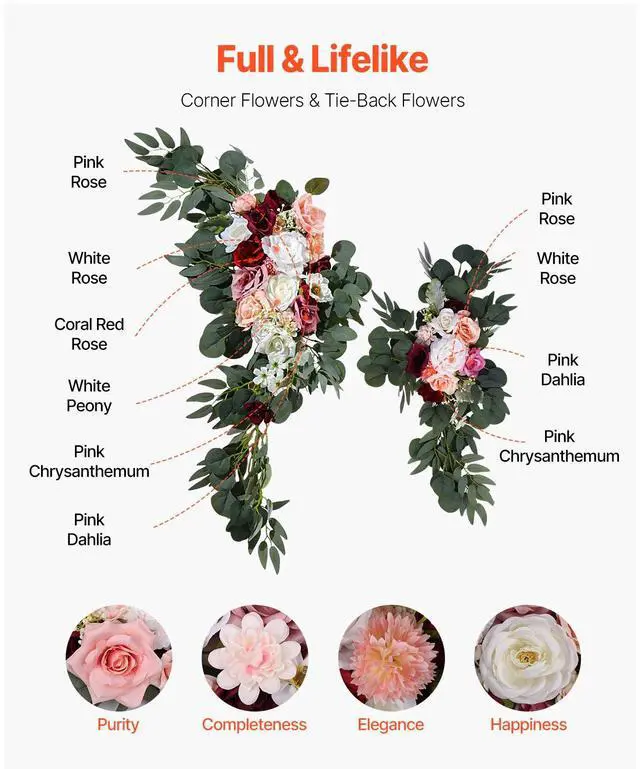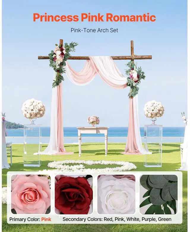 VEVOR Artificial Wedding Arch Flowers Kit (Pack of 4) with 21Ft Wedding Arch Draping Fabric,Arch Flowers for Wedding Ceremony and Reception Backdrop Wedding Decoration (Blush Pink & Ivory)