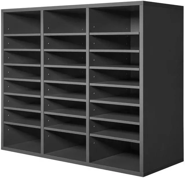 VEVOR Literature Organizer, 24 Compartments Office Mailbox with Adjustable Shelves, Wooden Mailbox Sorter Medium Density Fiberboard Office Home Classroom Storage for Files, Documents, Papers, Grey