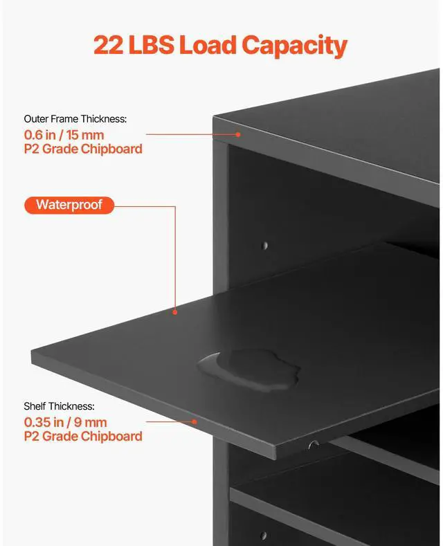 Number of Compartments: 3 Columns x 8 Rows = 24 Compartments,Shelf Spacing: Adjustable from 1.0-2.2 in / 25-55 mm,Main Materials: Veneered Chipboard, MDF,Load Capacity: 22 lbs / 10 kg per Shelf,Support Board Thickness: 0.6 in / 15 mm,Back Panel Thickness: 0.2 in / 5 mm,Color: Grey,Item Model Number: KLFC-18,Shelf Thickness: 0.35 in / 9 mm,Product Dimensions: 29.0 x 12.0 x 24.4 in / 737 x 305 x 620 mm,Net Weight: 50.9 lbs / 23.1 kg
