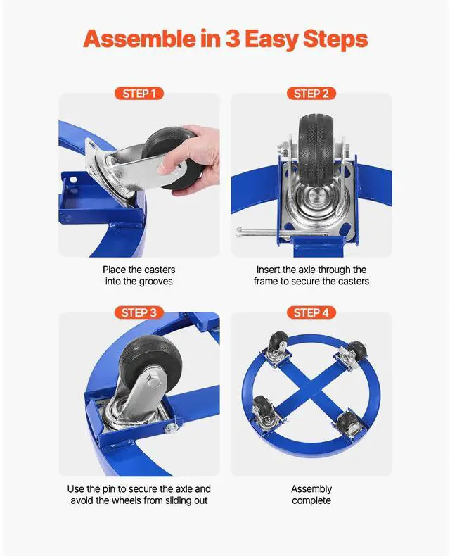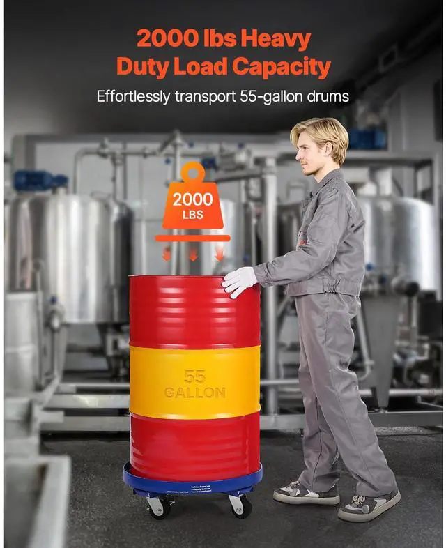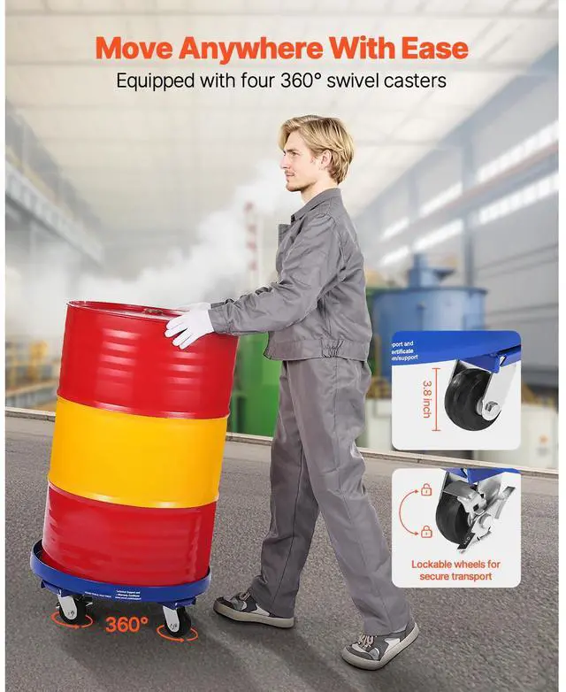 VEVOR 55 Gallon Drum Dolly 2000 lbs Barrel Dolly Cart Drum Caddy 4 Caster Wheels