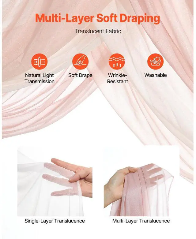 VEVOR Artificial Wedding Arch Flowers Kit (Pack of 5) with 33Ft Wedding Arch Draping Fabric,Arch Flowers for Wedding Ceremony and Reception Backdrop Wedding Decoration (Light Pink)