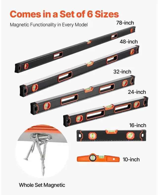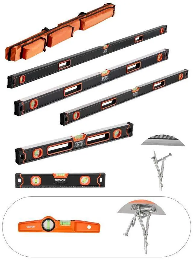 • VEVOR 6-Piece Torpedo Level 78/48/32/24/16/10 In Aluminum Alloy Body with Bubble Vials