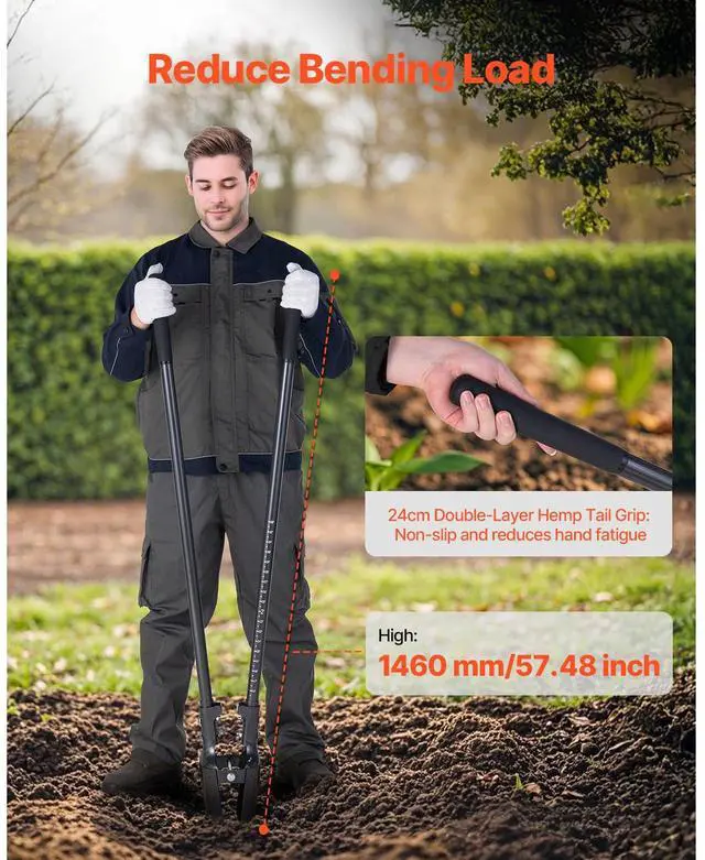 Post Hole Digger with Carbon Steel Handle Scale Marks 57.5" Manual Hole Digger