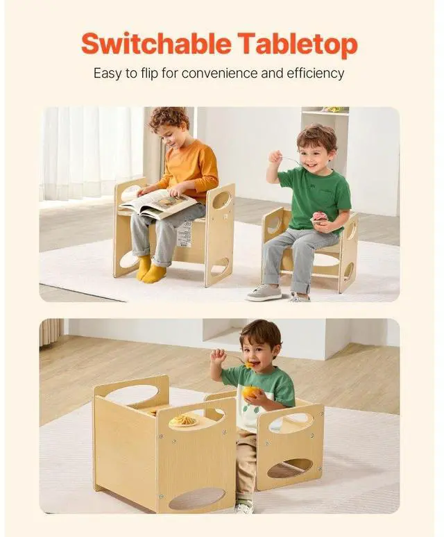 VEVOR Montessori Weaning Table and Chair Set, Wooden Toddler Table and Chair Set for Aged 1-5, Adjustable Height Kids Montessori Chair and Activity Table, Ideal for Reading, Eating, Playing - Natural