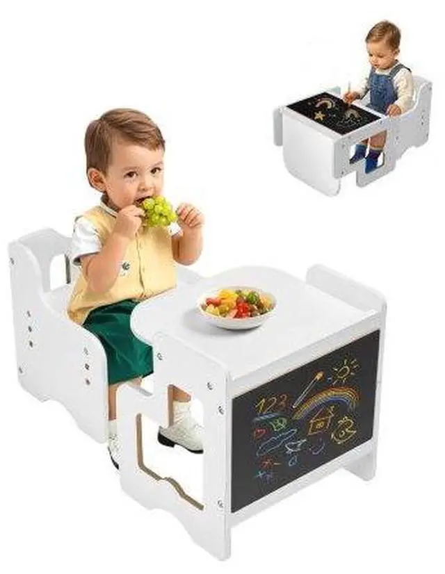 Weaning Table and Chair Set Montessori Toddler Desk with Blackboard White
