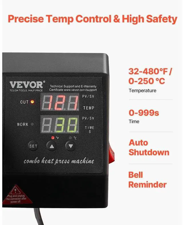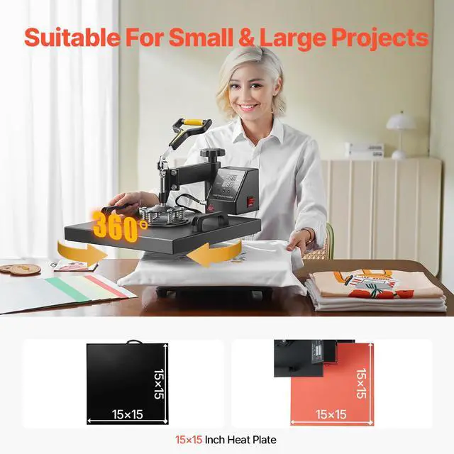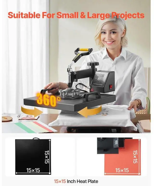 Heat Press Machine 2-In-1 15x15in Sublimation Print Transfer DIY T-shirt Cap