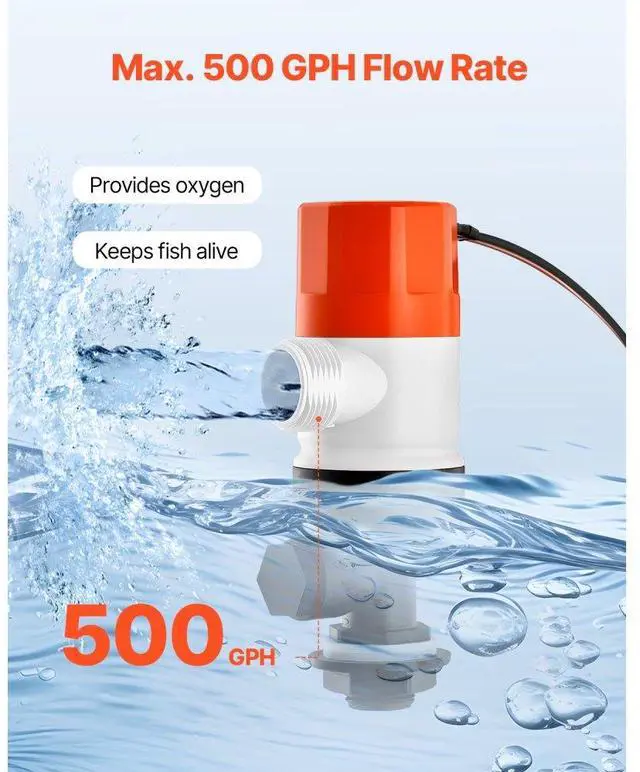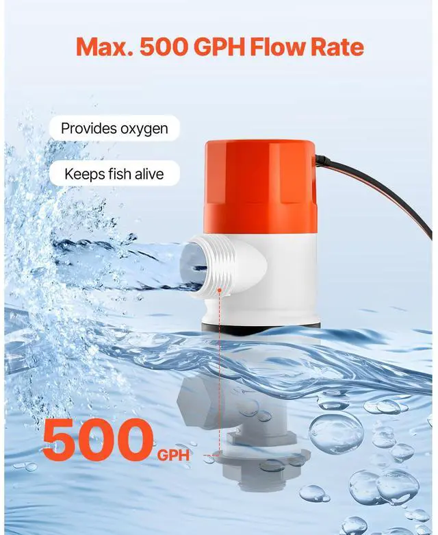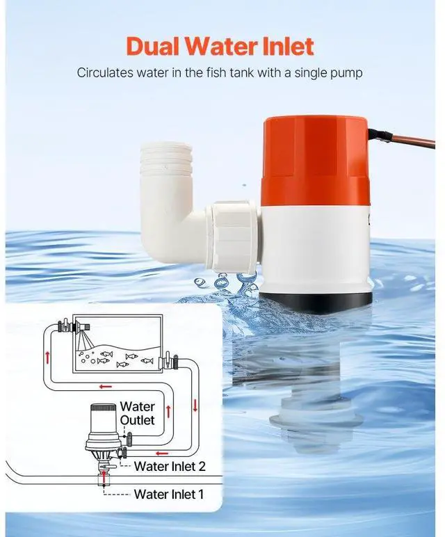 • VEVOR Livewell Pump for Boat 12V 500 GPH Livewell Aerator Pump Straight 2 Inlets