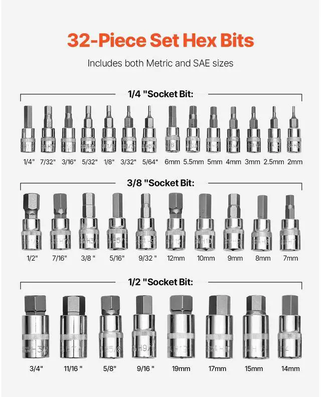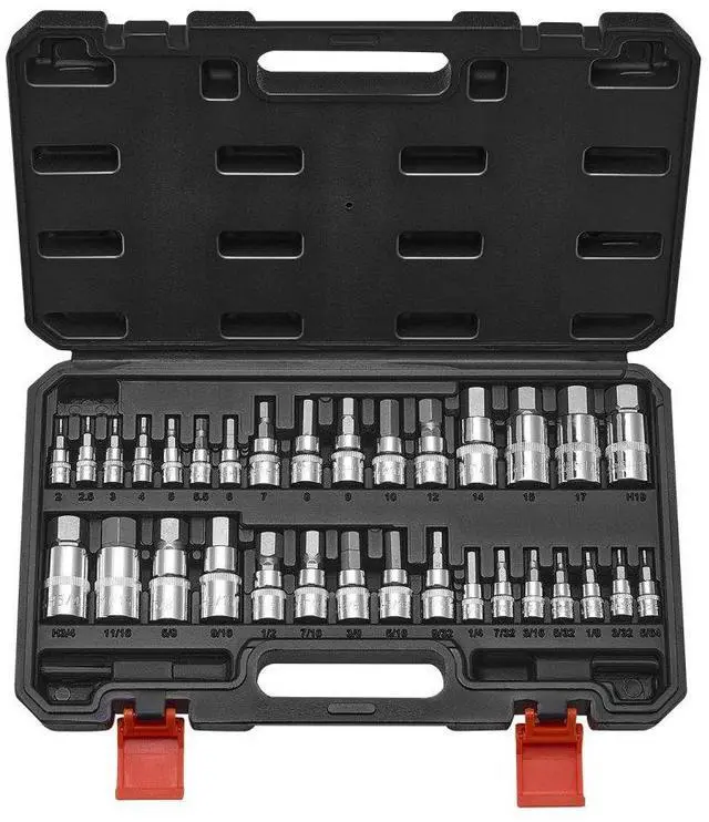 Hex Bit Socket Set 32-Piece S2 Alloy Steel Cr-V Steel Standard SAE and Metric