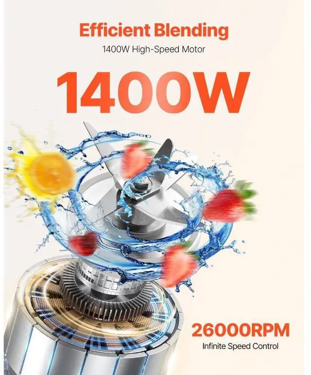 85 oz 1400W Blender for Smoothies Food Processing Blender for Kitchen