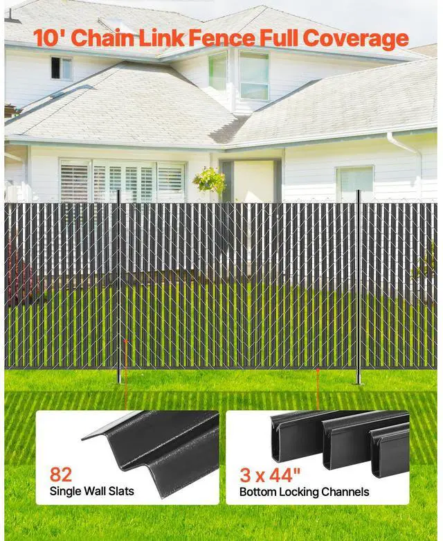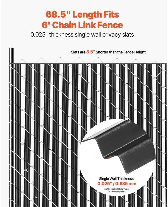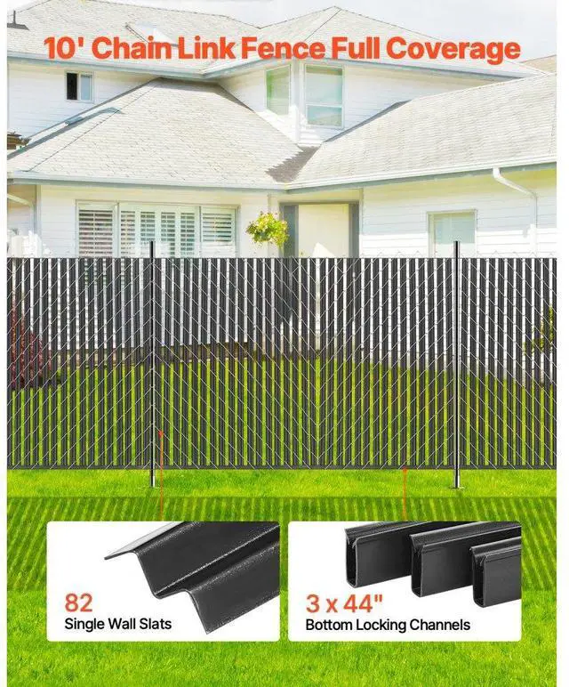 • VEVOR Chain Link Fence Privacy Slats Single-Wall for 6' High Fence Bottom Lock Black