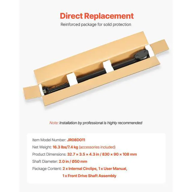 Item Model Number: JR08D011,Shaft Diameter: Ø2.0 in / 50 mm,Product Dimensions: 32.7 x 3.5 x 4.3 inch / 830 x 90 x 108 mm,Net Weight: 16.3 lbs / 7.4 kg (accessories included)