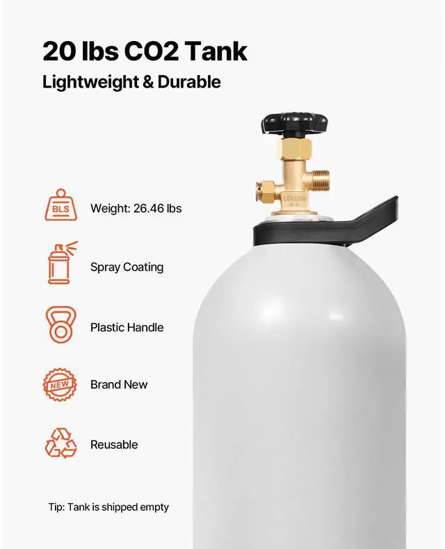 CO2 Tank 20 lbs New Aluminum Alloy Cylinder with CGA320 Valve DOT & TC Approved
