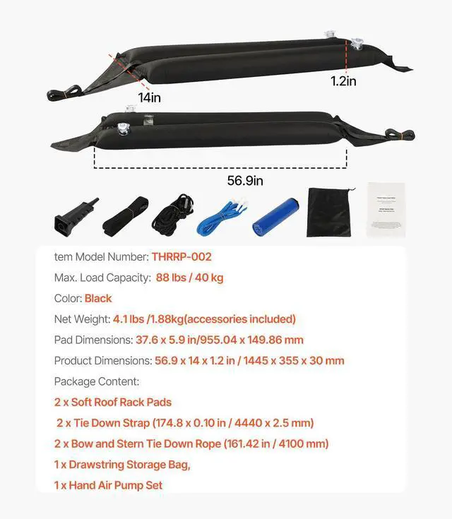 Inflatable Roof Rack Pads 88lbs Load Capacity for Kayak Canoe Surfboard