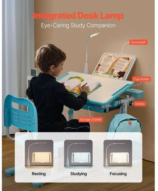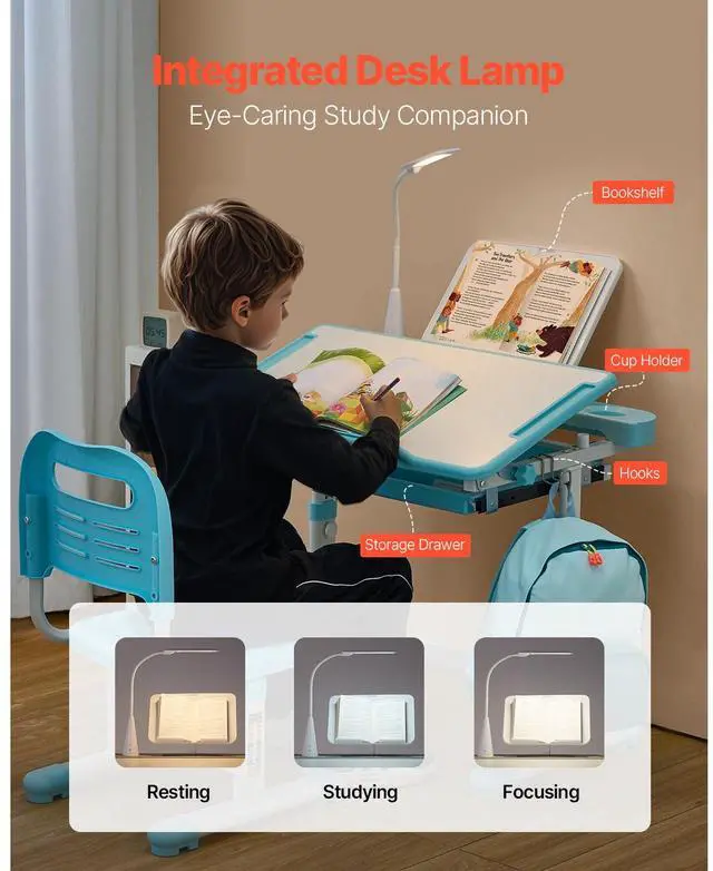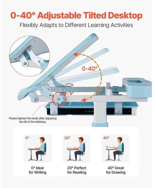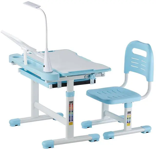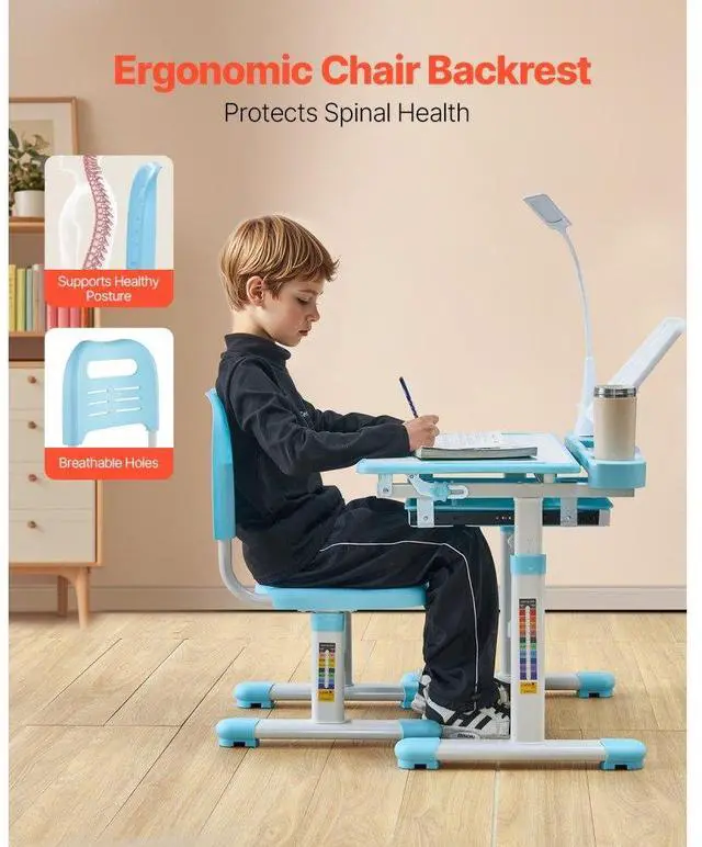 VEVOR Study Chair Set, Children Study Chair with Adjustable Height & 0-40° Tilted Desktop, Children Study Chair Set for Classroom & Study Room, Blue