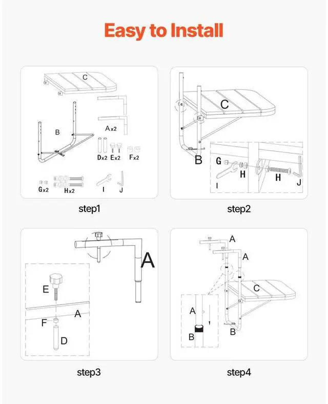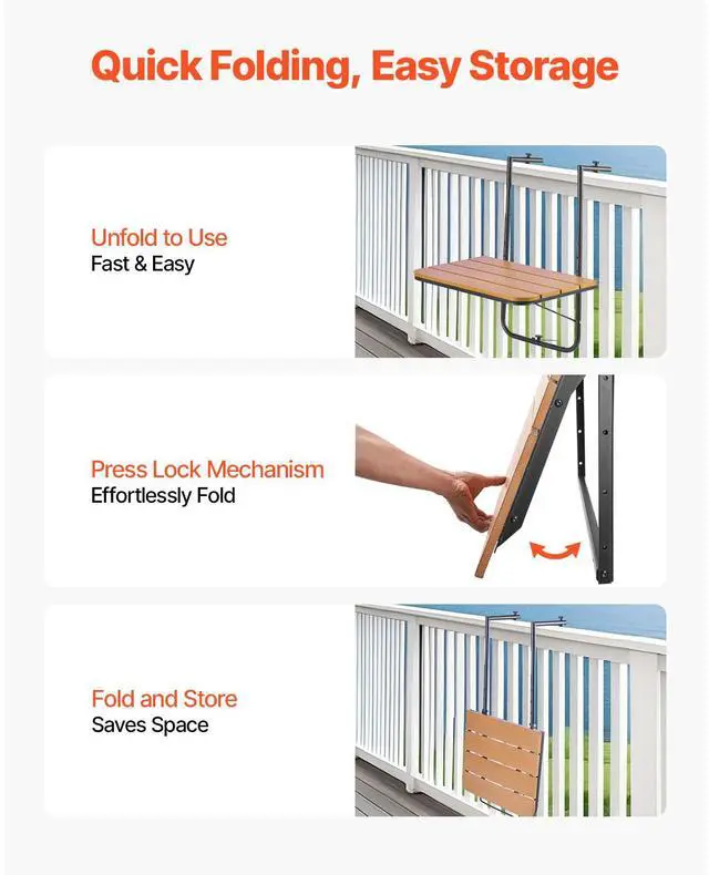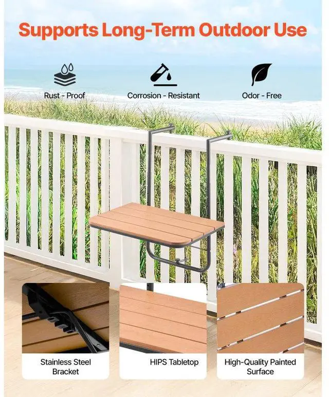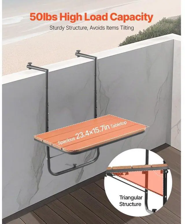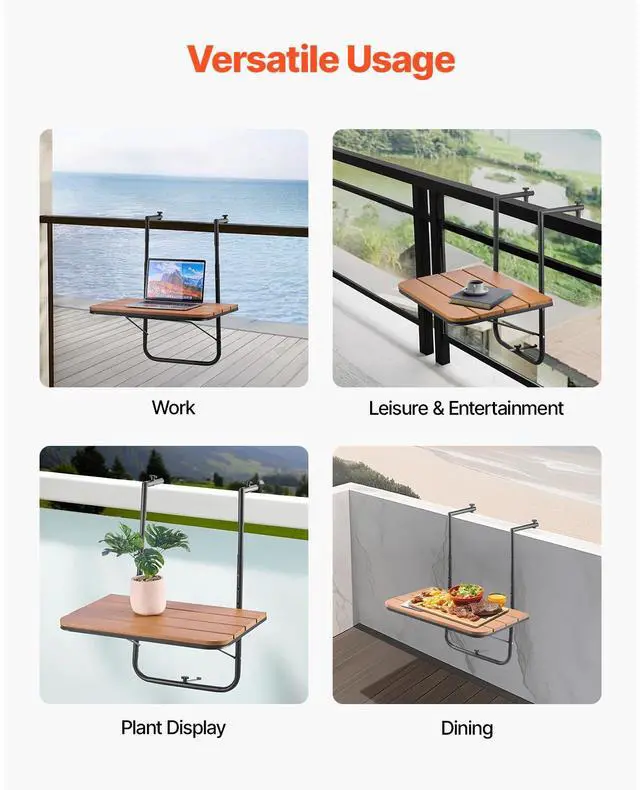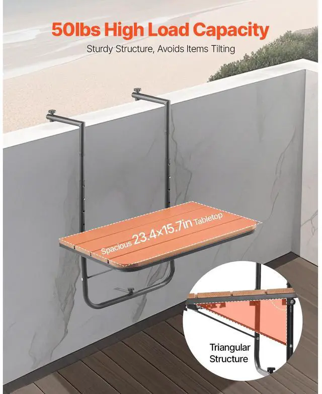 Balcony Hanging Table 25 x 24 in Outdoor Patio Railing Bar Table Adjusable
