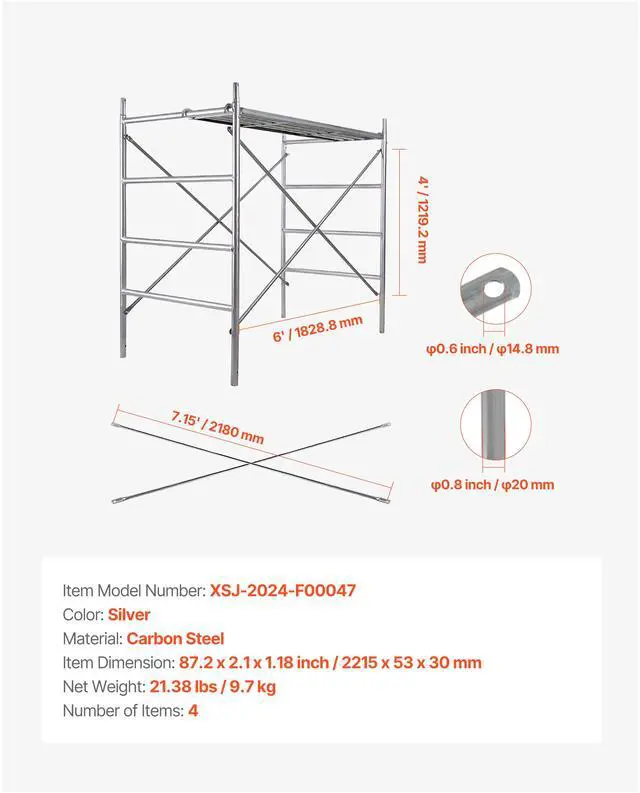 Scaffolding Cross Brace 6ft x 4ft 4-Pack Solid Carbon Steel Cross Supports