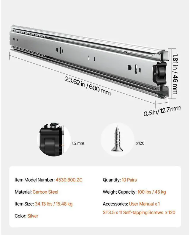 Item Size: 23.62 x 1.81 x 0.5 inch / 600 x 46 x 12.7 mm