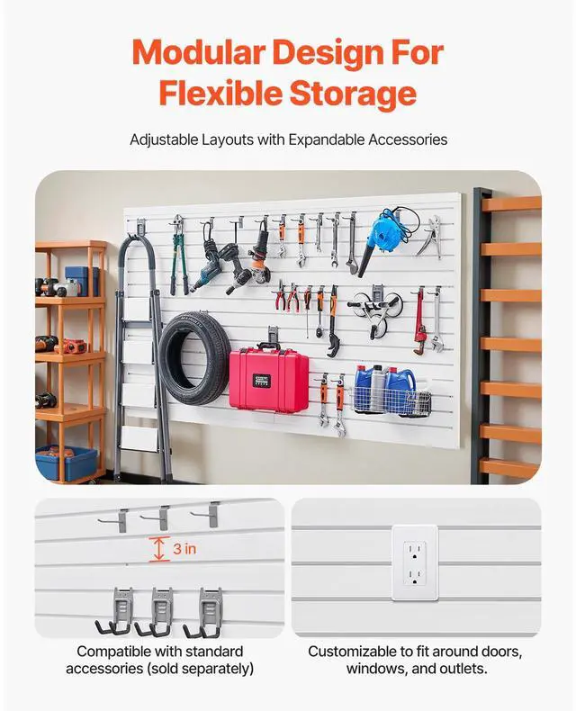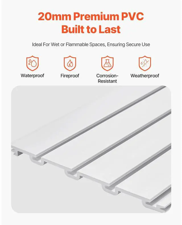 VEVOR 8 x 4 ft Slat Wall Paneling PVC White Garage Slatwall with Accessories