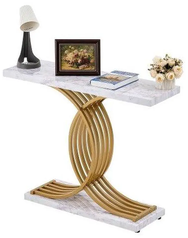 VEVOR Entryway Table, 39.4 Inch Gold Console Table, Narrow Console Table with Metal Frame, Modern Console Sofa Table for Living Room, Entryway, Hallway