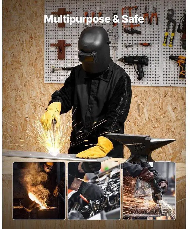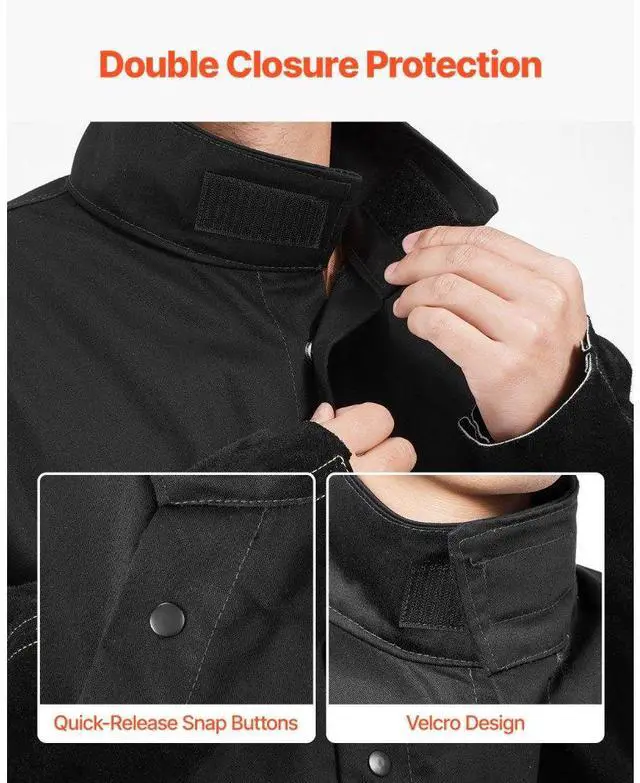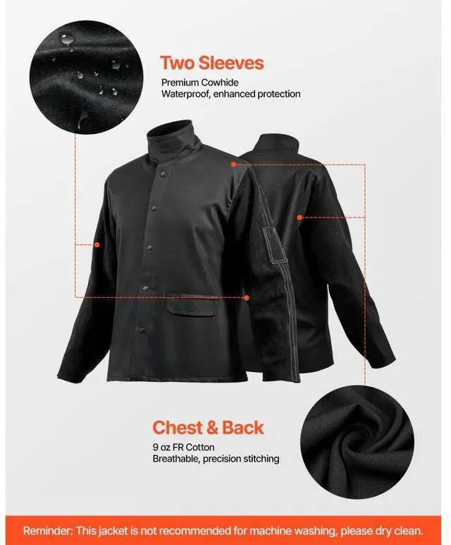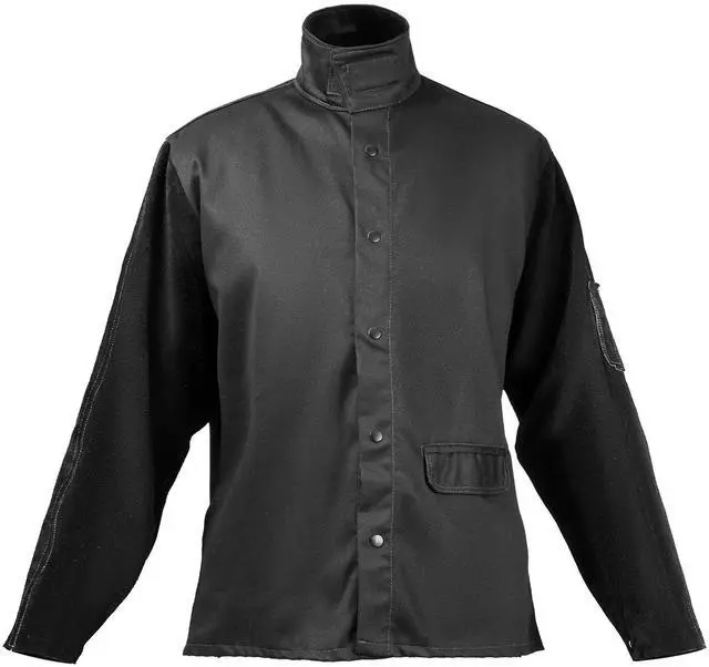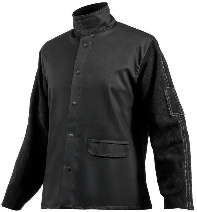 Flame-Resistant Welding Jacket XL Heavy Duty Cowhide Leather & 9oz FR Cotton