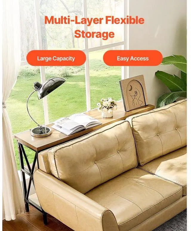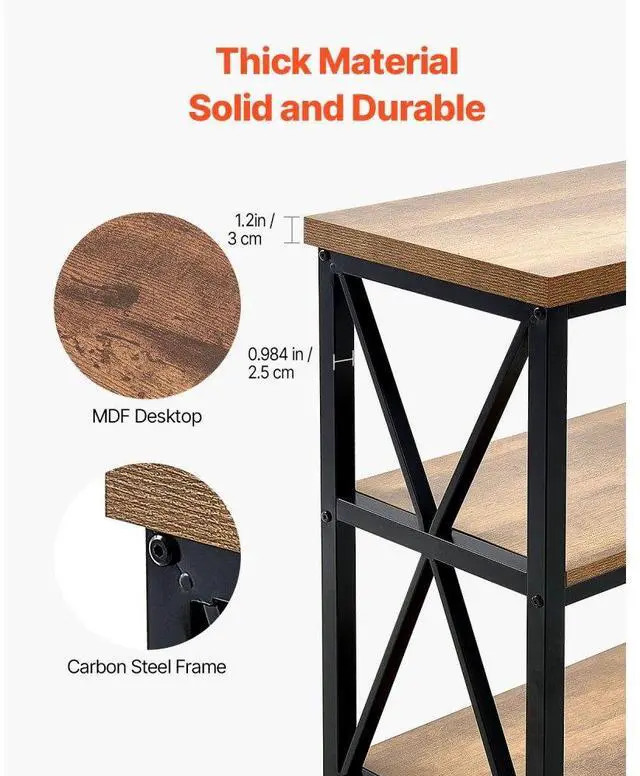 VEVOR Narrow Console Table, 55 Inch Entryway Table, 3-Tier Long Hallway Table, Sofa Table with Metal Frame, Console Tables for Entryway, Hallway, Living Room & Bedroom