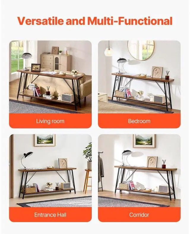 VEVOR Long Console Table, 70.9 Inch Entryway Table, Narrow Hallway Table with Metal Frame, Console Tables for Entryway, Hallway, Living Room & Bedroom