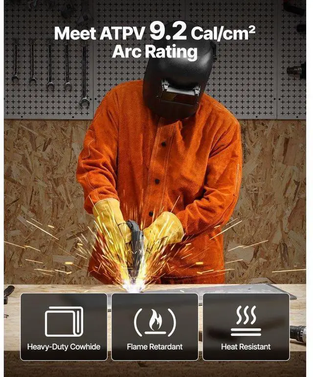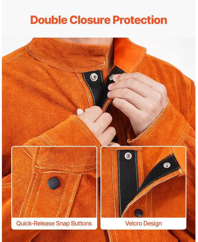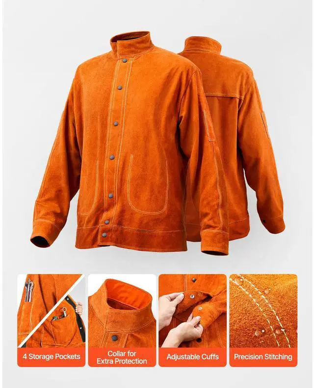 Flame-Resistant Welding Jacket Heavy Duty Leather Welding Safety Jacket XXL Size