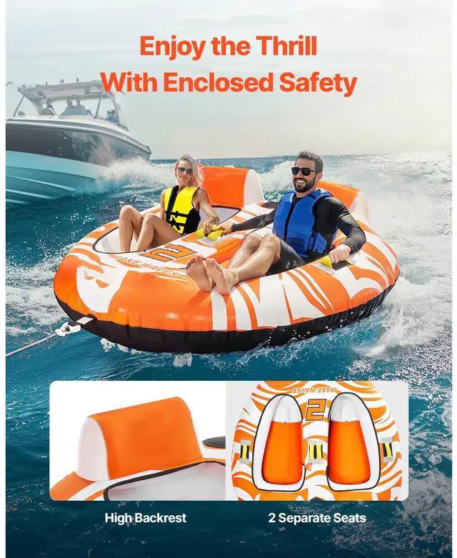 Towable Tubes for Boating 2-Person Inflatable Boating Towables with 2 Cockpits