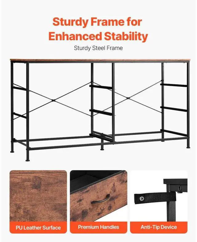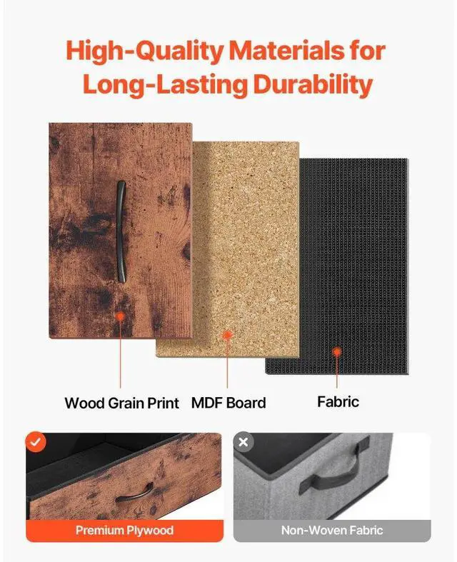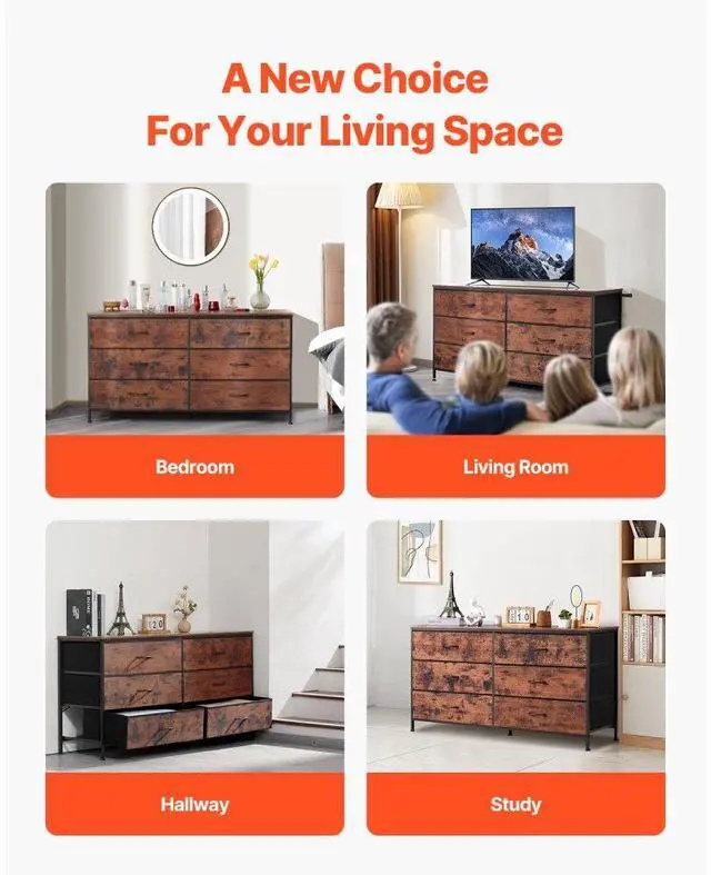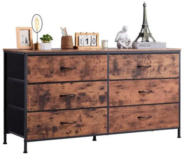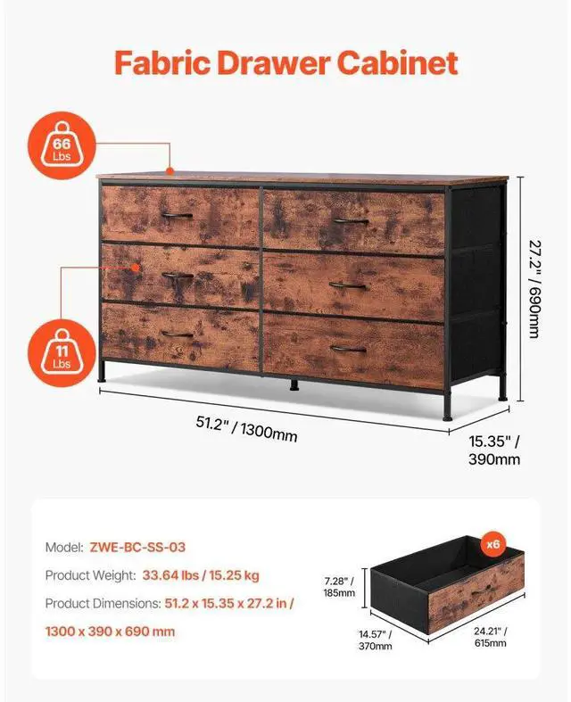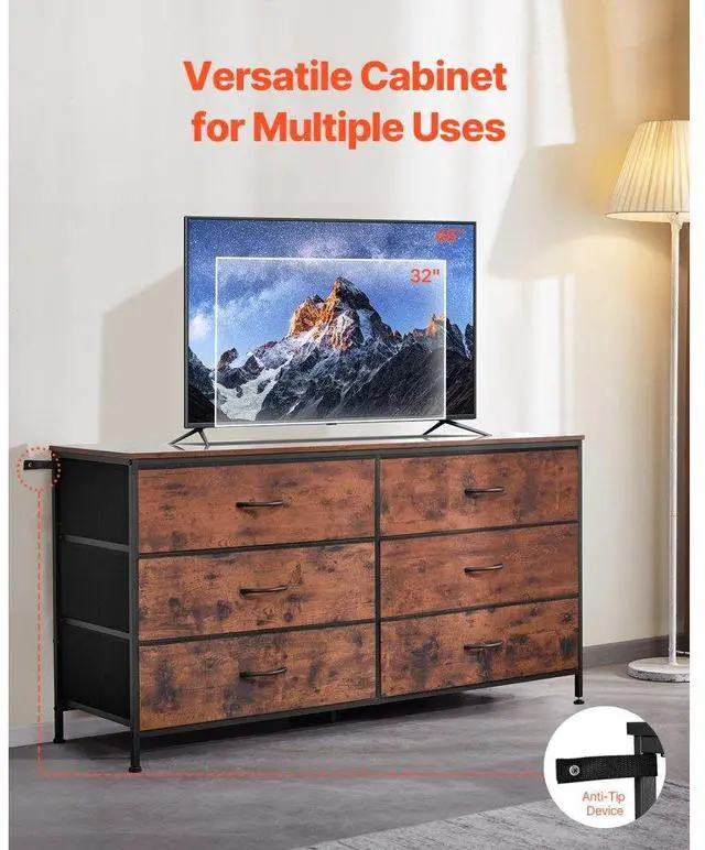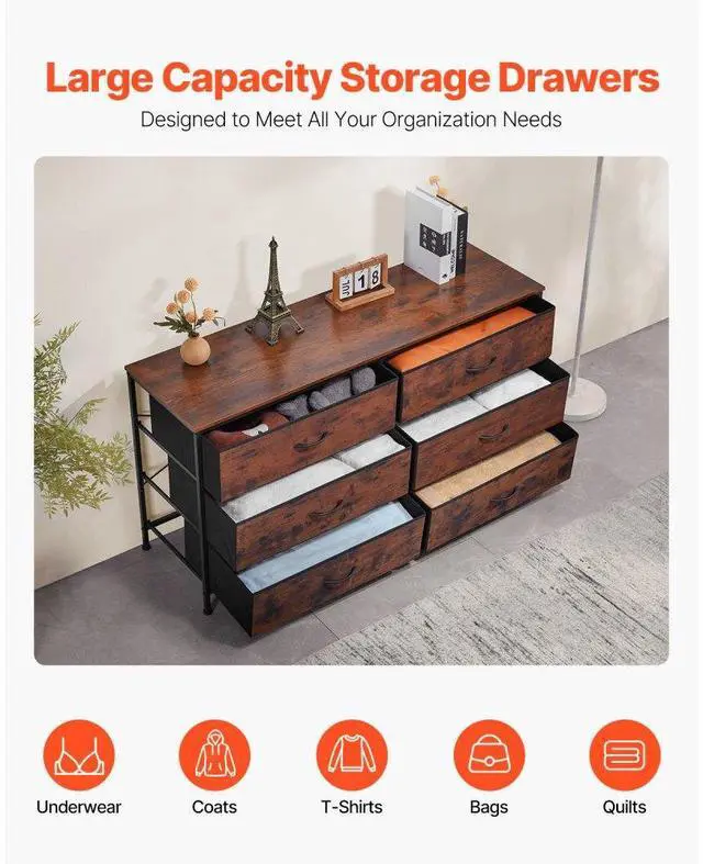 • VEVOR 6 Drawer Dresser, Tall Chest Organizer Drawer Dresser, TV Stand with Storage, Closet Storage Drawers with Sturdy Steel Frame, Fabric Storage Tower for Bedroom, Hallway, Closet, Rustic Brown