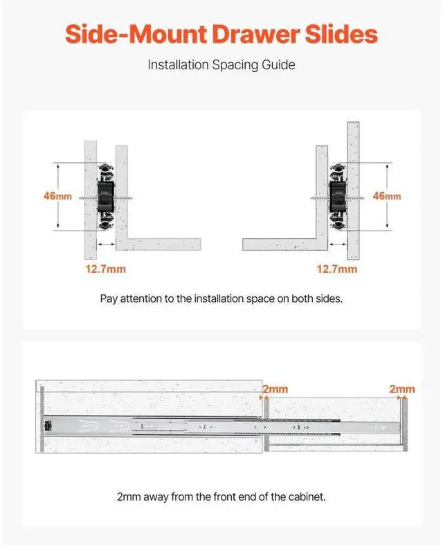 Drawer Cabinet Slides Side Mount 22 inch 10 Pairs 100 LB Load Replacement