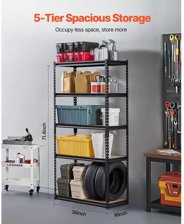 Storage Shelves 16" D x 36" W x 71.4" H 5-tier Garage Storage Shelving