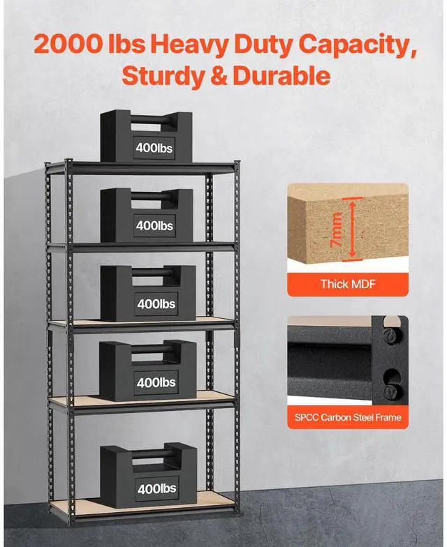 Weight Capacity: 2000 lbs / 907 kg (Total), 400 lbs / 181 kg (Per Shelf),Item Model Number: 3676V4VPV0,Product Net Weight: 37 lbs / 16.8 kg (Including All Accessories),Product Dimensions: 16 x 36 x 71.4 in / 406 x 914 x 1813 mm,Main Material: SPCC Steel + Powder Coating + MDF