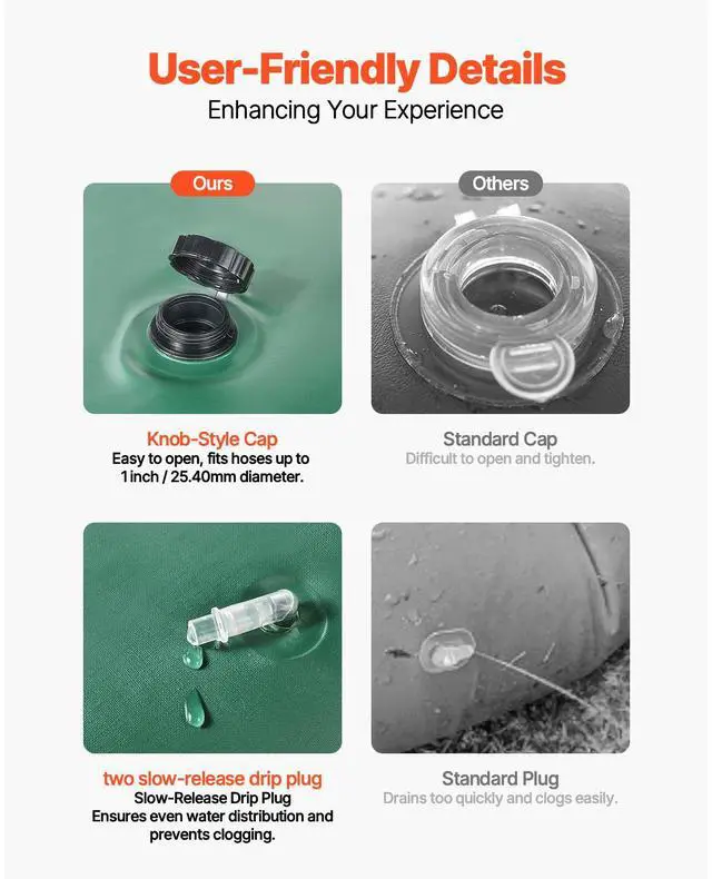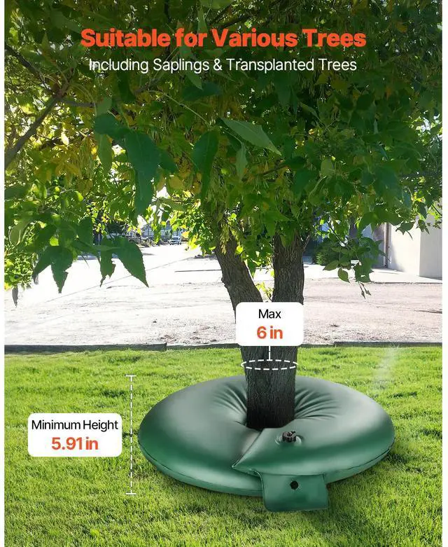 Set Quantity: 4-piece set,Capacity: 20gal / 75.7L,Item Model Number: TWB-20gal-W4,Compatible Hose: 1in / 25.40mm diameter (Inner Diameter: 1.18in / 30mm),Minimum Height Required: 5.91in / 150mm,Net Weight: 7.50lbs /3.4kg,Main Material: PVC (520gsm),Compatible Tree Diameter: 5.51in / 140mm