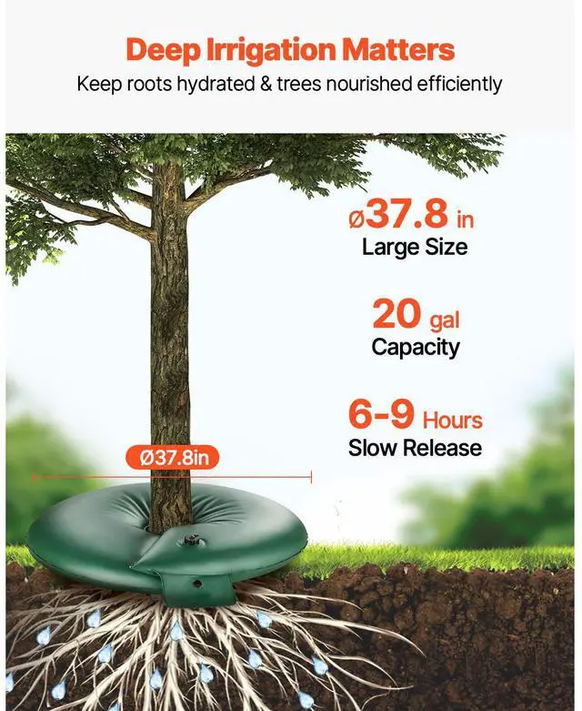 VEVOR Tree Watering Bag Slow Release, 4 Pack 20 Gallons Tree Watering Bags/Ring, Reusable Refillable Tree Irrigation Ring Water Bags, Heavy Duty Watering System for Shrub Tree Root Drip Irrigation