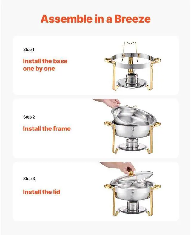 Food Pan Capacity: 5Qt / 4.7L,Water Pan Capacity: 7Qt / 6.6L,Color: Gold,Item Model Number: HZ-831B,Product Weight: 22 lbs / 12.8 kg ±5 %,Quantity: 4,Material: Stainless Steel,Heating Method: Fuel