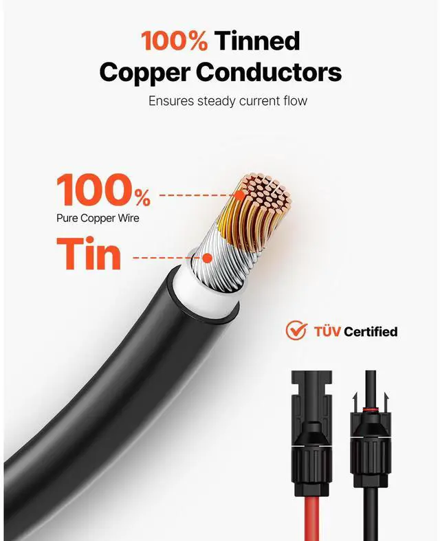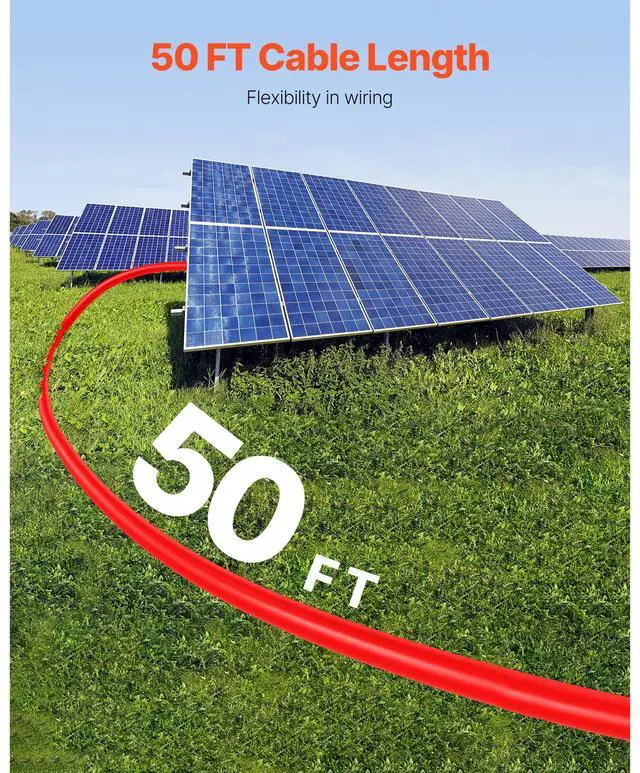 50FT Solar Panel Extension Wire with Female & Male Connectors 10AWG 1 Pair
