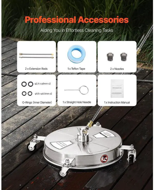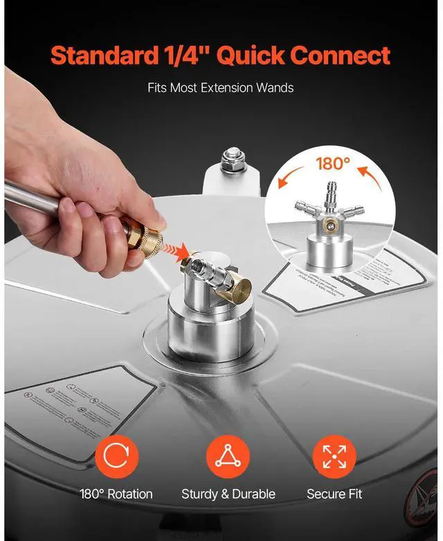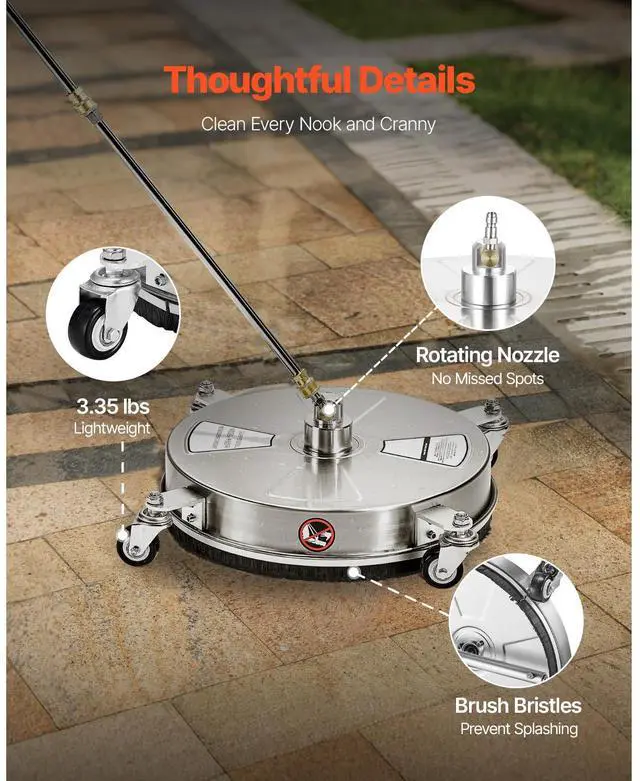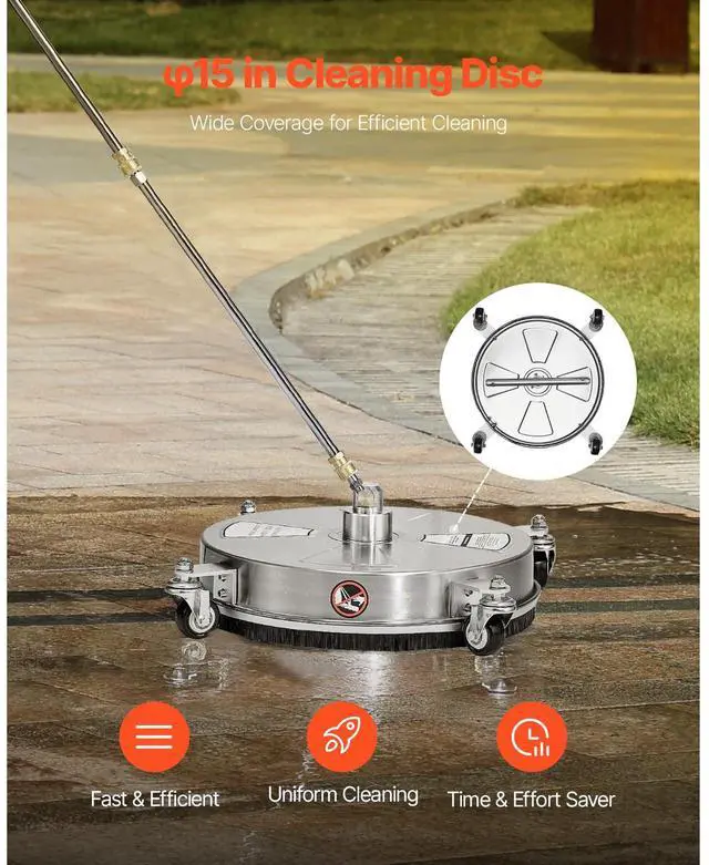 16.5" Pressure Washer Surface Cleaner 4 Wheels Stainless Steel 4000 Max PSI