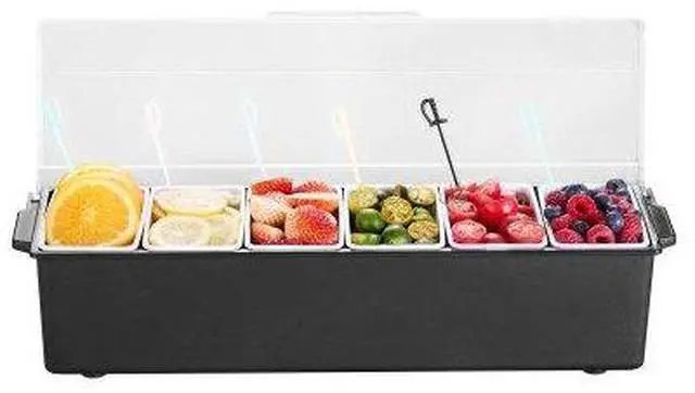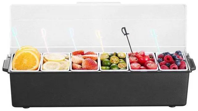 • VEVOR Chilled Condiment Server 6 Compartment Cold Serving Tray with Lid for Fruit