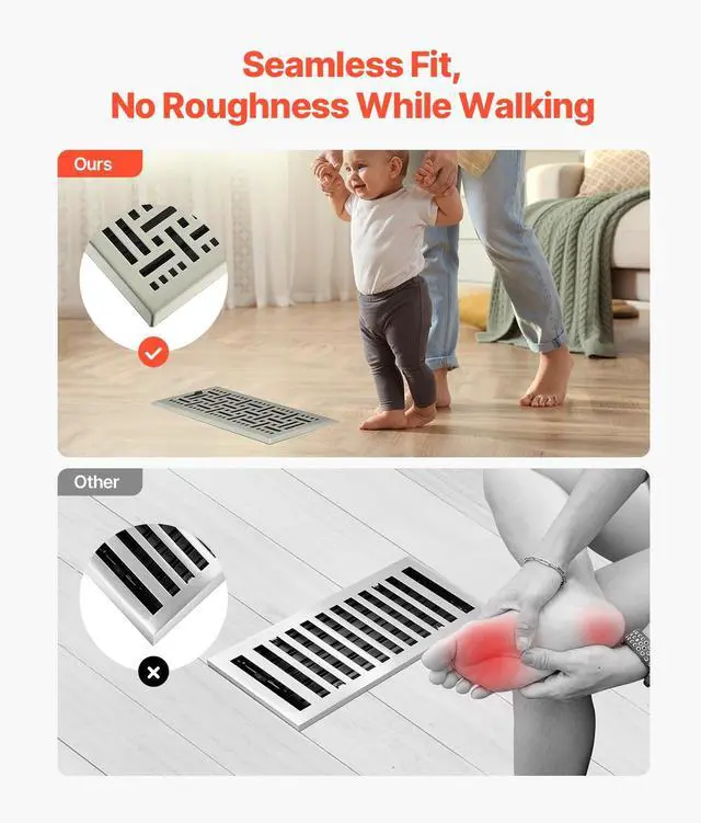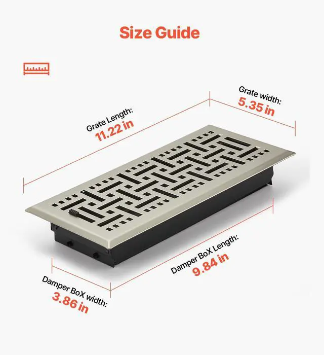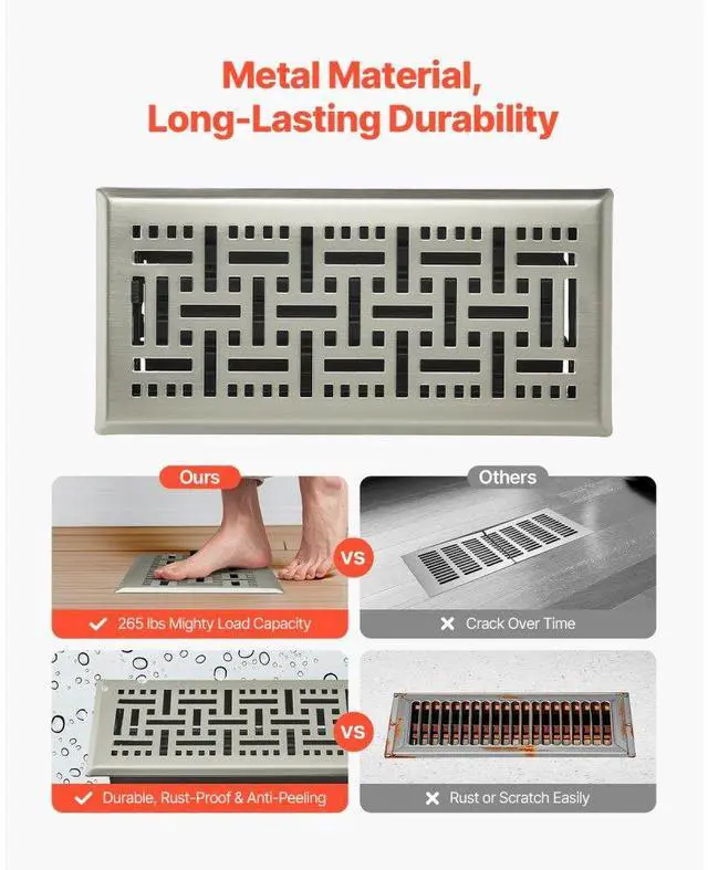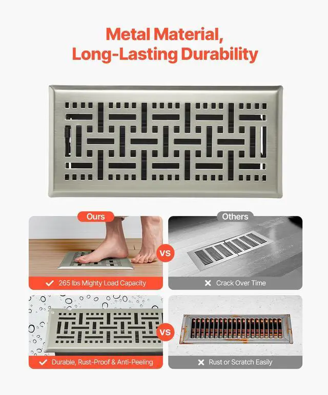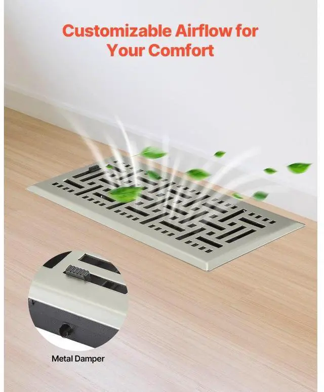 • VEVOR Floor Registers 4x10 Inch 2-Pack Iron Floor Vents for HVAC Grilles Nickel-Plated