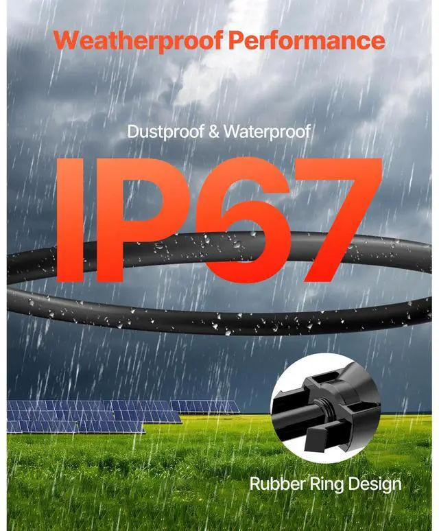 • VEVOR 20FT Solar Panel Extension Wire with Female & Male Connectors 10AWG 1 Pair