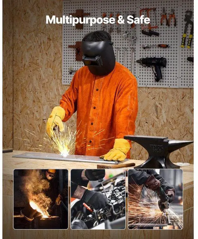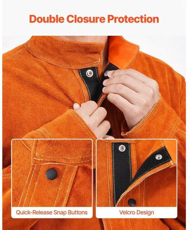 Flame-Resistant Welding Jacket Heavy Duty Leather Welding Safety Jacket M Size