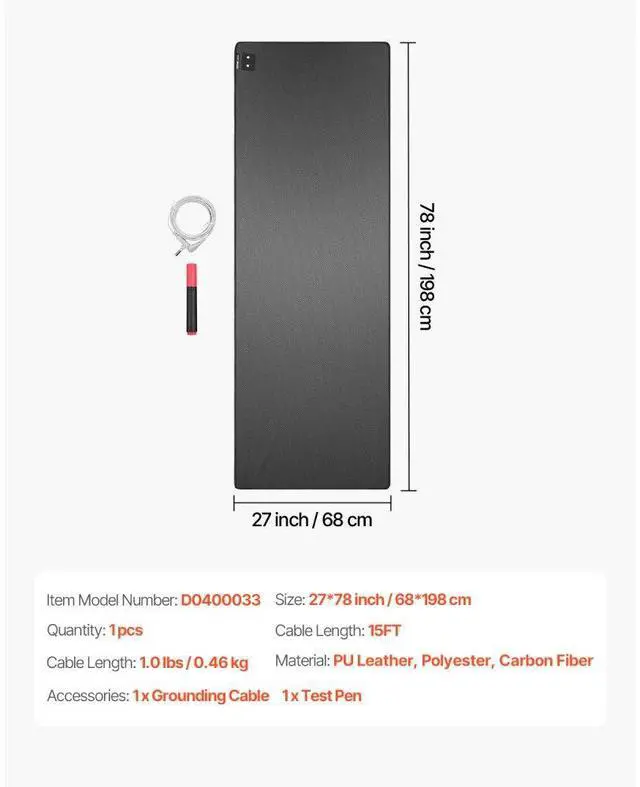 Item Model Number: D0400033,Quantity: 1 Pcs,Cable Length: 15 ft,Material: PU Leather, Polyester, Carbon Fiber,Product Dimensions: 26.8 x 78.0 x 0.02 in / 680 x 1980 x 0.6 mm,Net Weight: 0.7 lbs / 0.298 kg