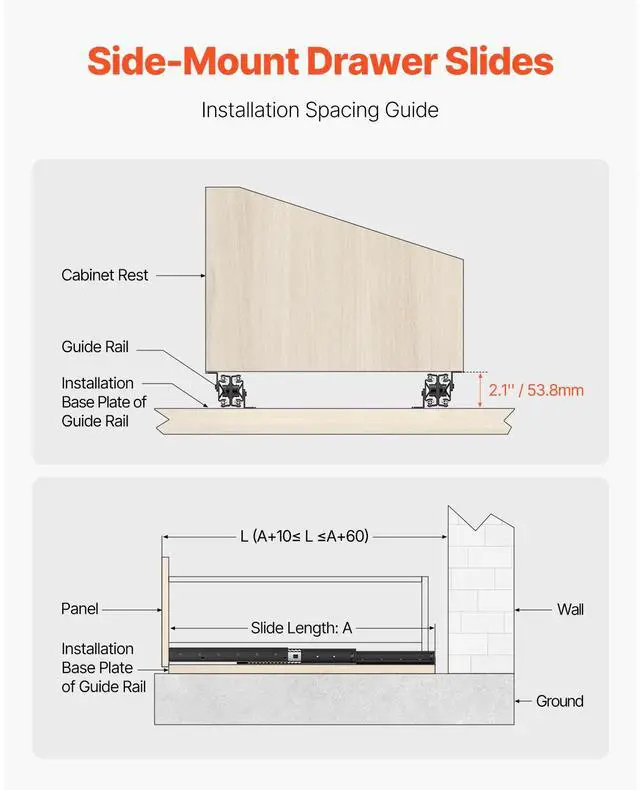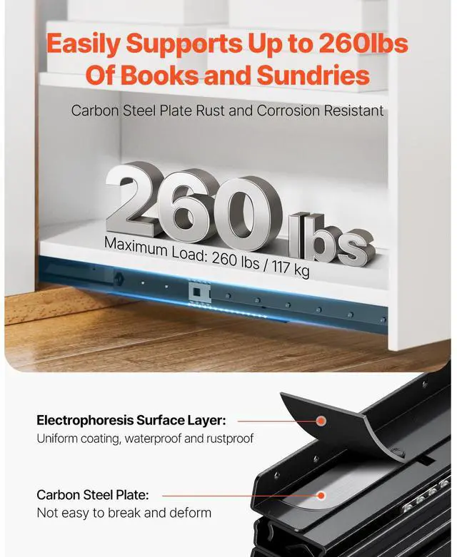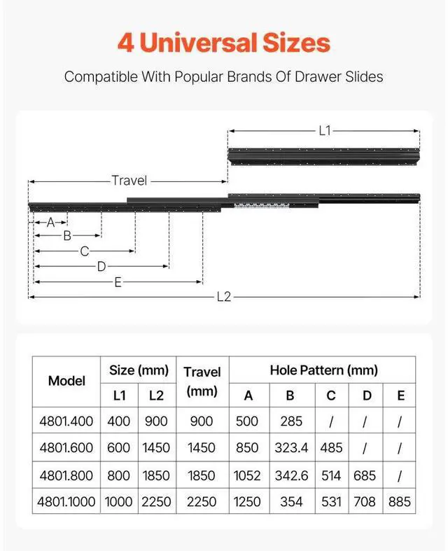 • VEVOR Undermount Drawer Slides 16 inch Under Stair Cabinet Rails 260 LB Load