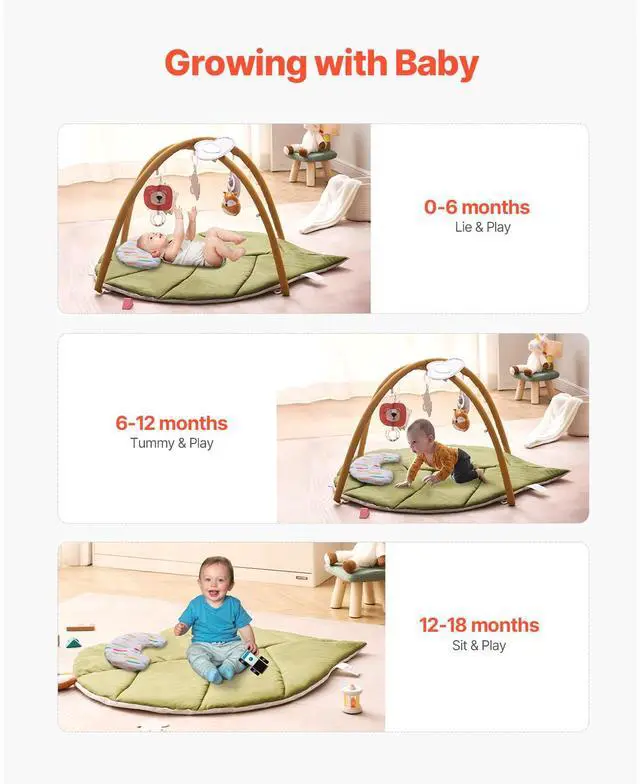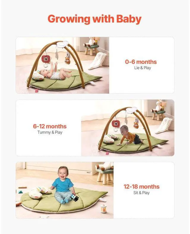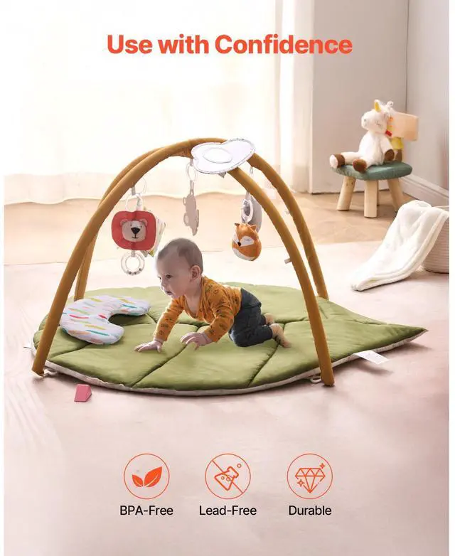 • VEVOR Baby Play Gym Mat Tummy Time Activity Mat with 6 Sensory Toys 42.9" x 33.5"