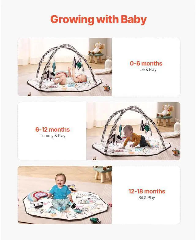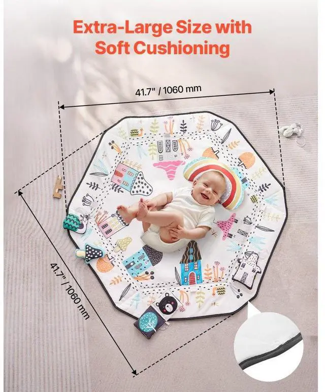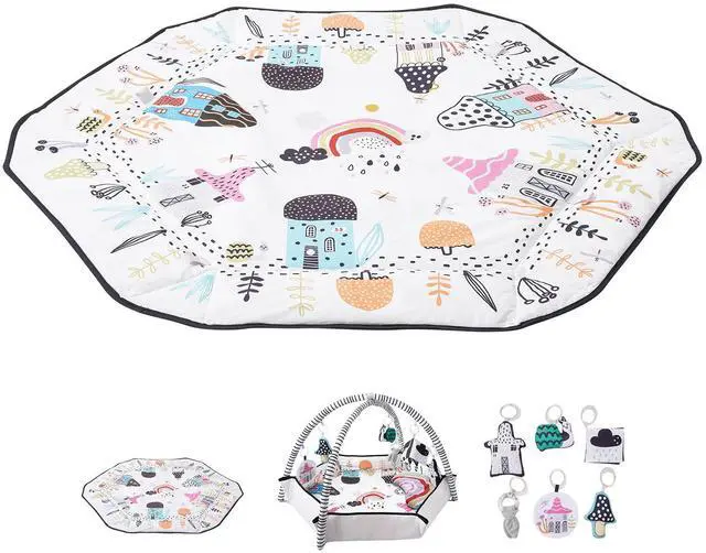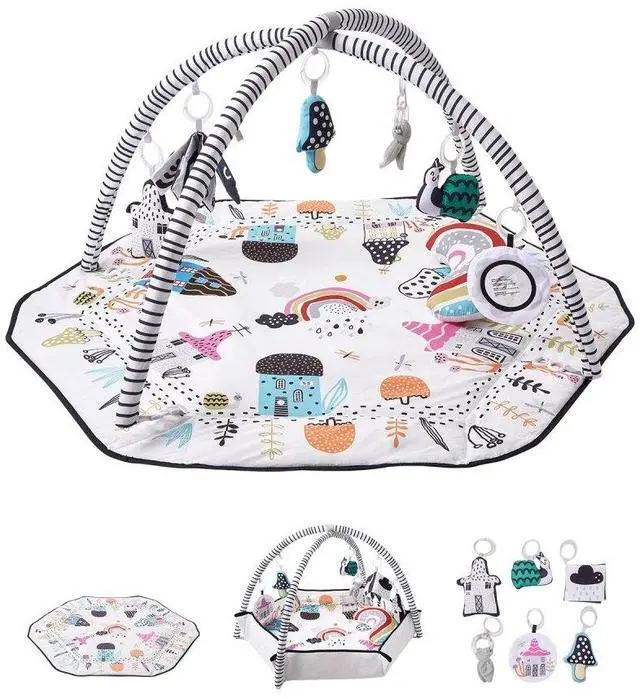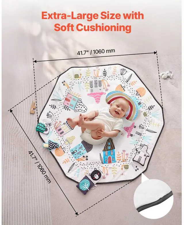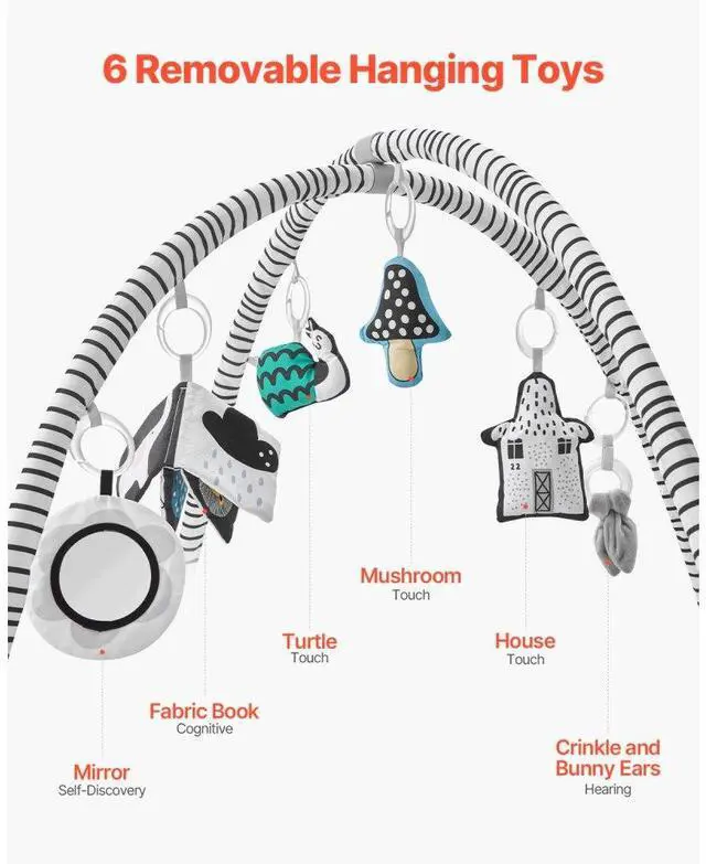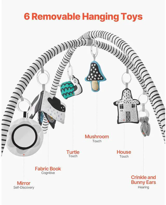 Baby Play Gym Mat Tummy Time Activity Mat with 6 Sensory Toys 41.7" x 41.7"