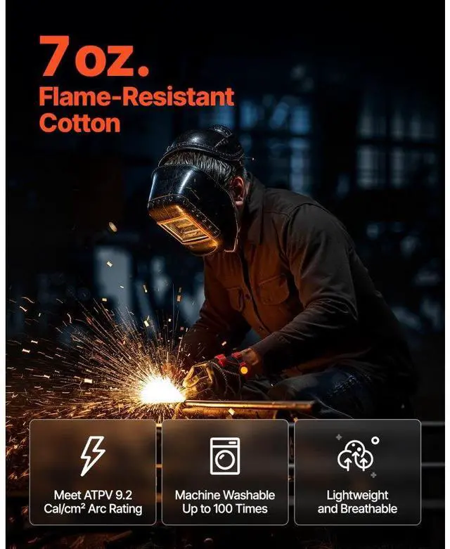 Flame-Resistant Welding Jacket XXL-Sized 7oz FR Cotton Welding Safety Jacket