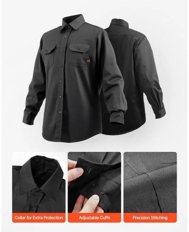 Chest: 59 in,Sleeve Length: 27 in,Size: XXL,Color: Black,Material: Pure Cotton,Flame-Resistant Material: Yes,Product Dimensions: 35.5 x 59 x 27.0 in / 901.7 x 1498.6 x 685.8 mm,Button Type: Button,Fabric Weight: 7 oz,Length: 35.5 in,Item Model Number: AP-6832,Pockets: 2,Net Weight: 1.53 lbs / 0.69 kg (including all accessories),Arc Rating: ATPV 9.2 Cal/cm²