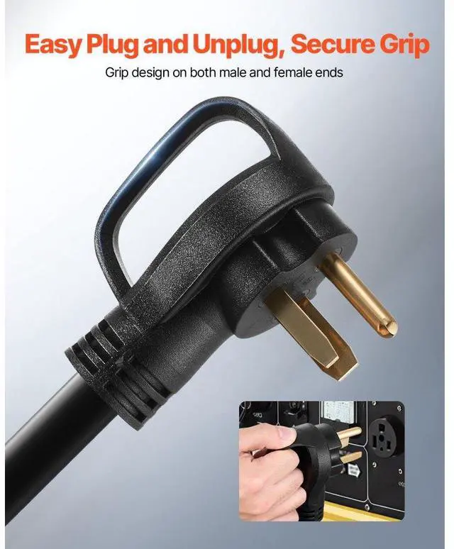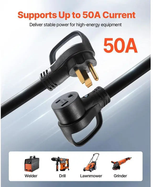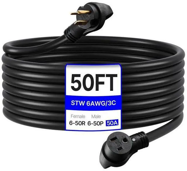 50A Generator Extension Cord 50 ft 250V NEMA 6-50P to 6-50R 12500W Power Cable