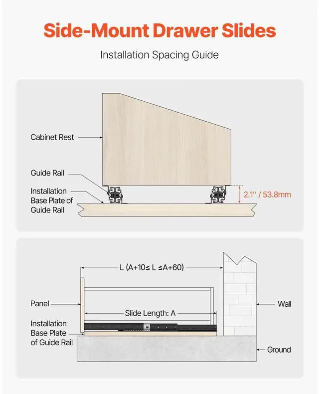 Undermount Drawer Slides 40 inch Under Stair Cabinet Rails 260 LB Load