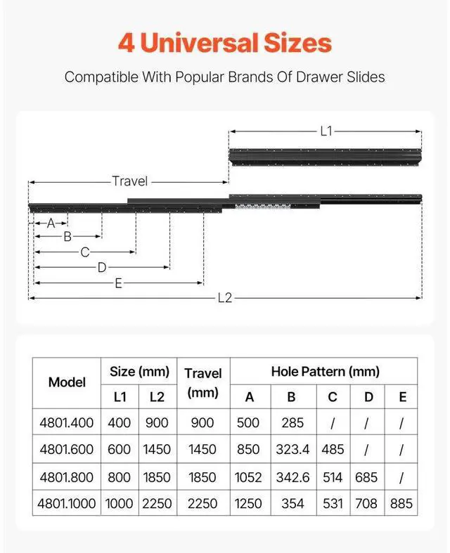 Undermount Drawer Slides 40 inch Under Stair Cabinet Rails 260 LB Load